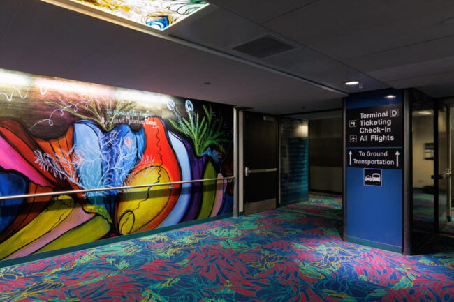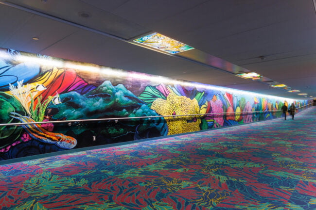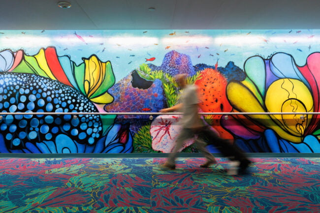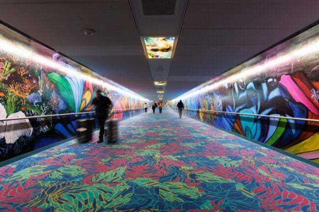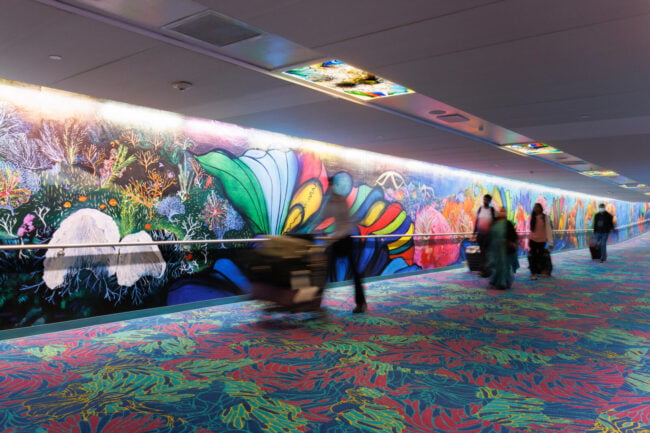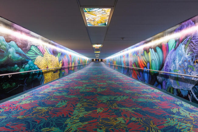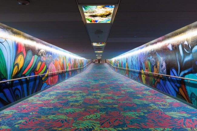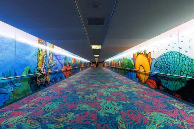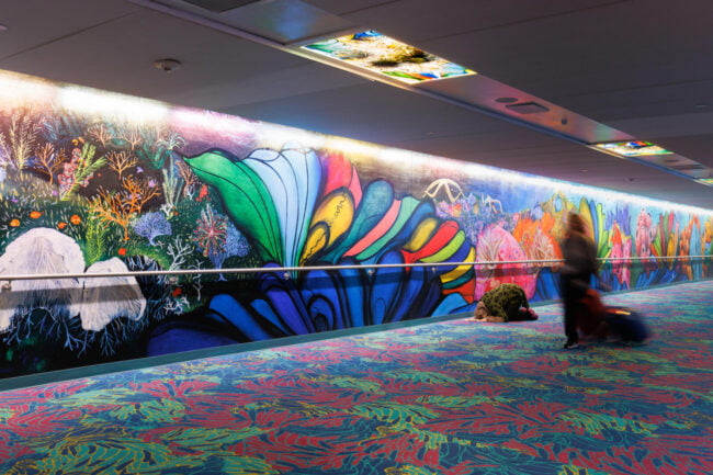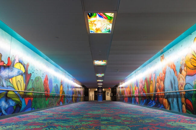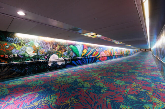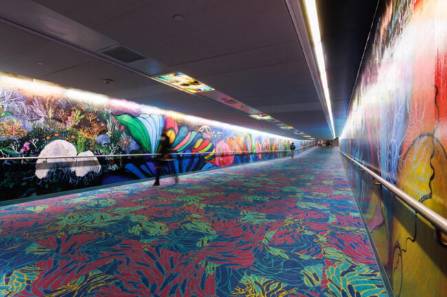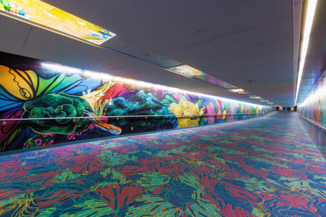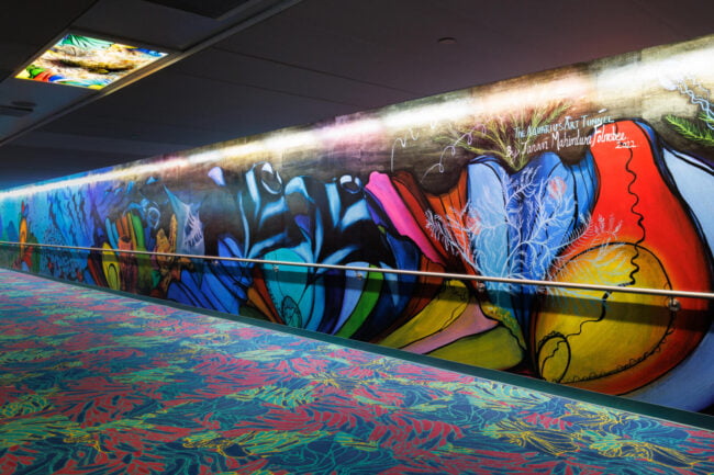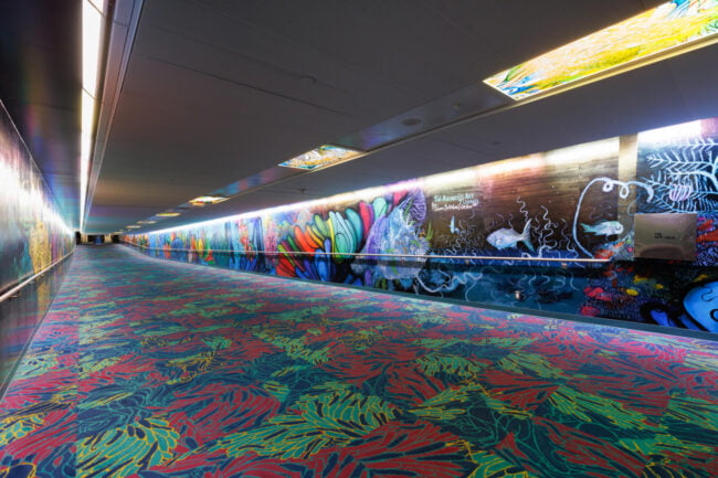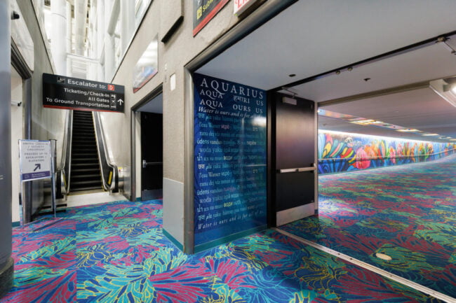 “For this tunnel, I want to create a space that reflects the way all of us are internationally connected. This is a work of art that also reveals who I am as a global citizen: a proud Houstonian, a worldwide scuba diver, a marine conservation artist, and a woman who was born and raised in Mumbai, India. The title of the work comes from a constellation in the very night sky that connects us all, the water bearer named Aquarius.”